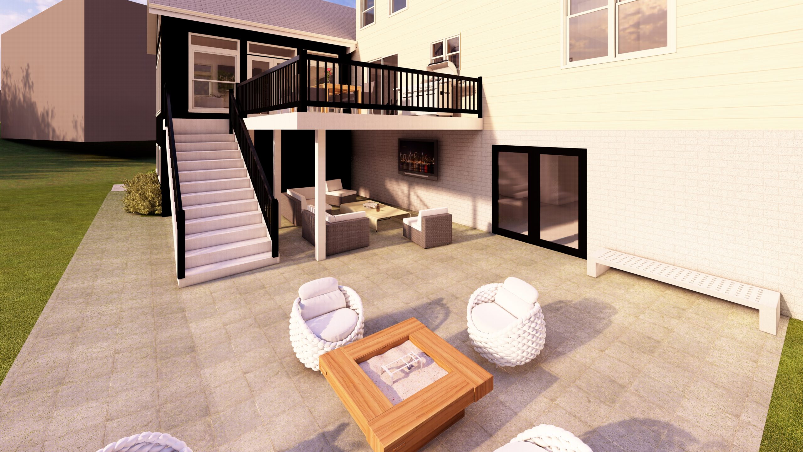 The transformation extends outdoors with a new screened patio, designed for seamless indoor-outdoor living and relaxation.